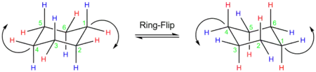 Інверсія кільця циклу (рос. инверсия кольца, англ. ring reversal (ring invertion), Ring Flip) — трансформація однієї циклічної конформації в іншу, що відбувається без розривів циклічних зв'язків, лише внаслідок конформаційних рухів. Веде до циклічної структури тієї ж форми. Таке взаємоперетворення циклічних конформерів відбувається шляхом обертання навколо одинарних зв‘язків (з деформацією кутів у перехідному стані). При цьому еквівалентні форми кілець можуть переходити одна в одну (напр., крісло → крісло), але не обов'язково зберігаються еквівалентні позиції замісників(напр., екваторіальні можуть перейти в аксіальні).
