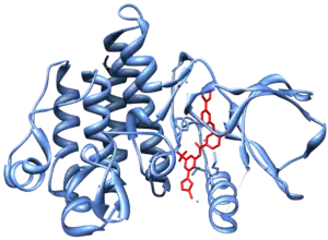 - Polier (2013). ATP-competitive inhibitors block protein kinase recruitment to the Hsp90-Cdc37 system. Nture Chem Biol 9 (5): 307–312. PMID 23502424. doi:10.1038/nchembio.1212. (англ.)