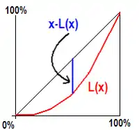 Графічно може бути представлений як найдовша вертикальна відстань між кривою Лоренца (сукупною частиною загального доходу), що знаходиться нижче певного процентиля доходу, та лінії 45°, яка представляє ідеальну рівність доходів.