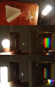 Індекс передавання кольору джерела світла, не вказує на удаваний колір джерела світла; ці дані знаходяться під рубрикою корелятивної колірної температури (CCT). CRI визначається спектром джерела світла. На знімку праворуч, показано безперервну веселку кольорів лампи розжарення і переривчастий лінійний спектр люмінесцентної лампи — колишня «застаріла» лампа розжарення, має набагато більший CRI.