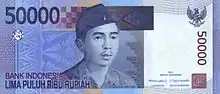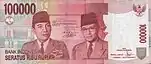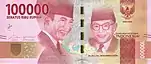 100 000 | 151×65 | Червоний | портрети Сукарно та Мохаммада Хатти | Будівля Ради народних представників (парламенту) | з 2004 |