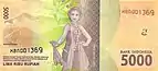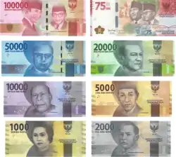 | Банкноти | 1000, 2000, 5000, 10 000, 20 000, 50 000 і 100 000 рупій |