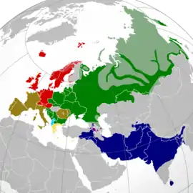 | Поширені: | Доколоніальна епоха: Євразія і Північна Африка Сьогодні: приблизно 3.2 млрд носіїв у світі |