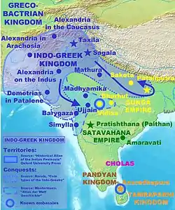 - Hatto H. Schmitt: Indien. In: Hatto H. Schmitt / Ernst Vogt: Kleines Lexikon Hellenismus. Studienausgabe (Nachdruck der 2. überarbeiteten und erweiterten Auflage 1993). Harrassowitz, Wiesbaden 2003, ISBN 3-447-04727-5, S. 267–270 (knapper Überblick mit Literatur).