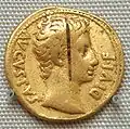 Монета римського імператора Августа, знайдена в скарбі Пудукоттай. Британський музей