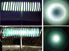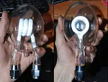 - газорозрядної трубки, внутрішню поверхню якої може бути покрито люмінофором для отримання видимого світла або спеціальним світловідбивним покриттям на основі кремнію, призначеним для отримання високих яскравостей;