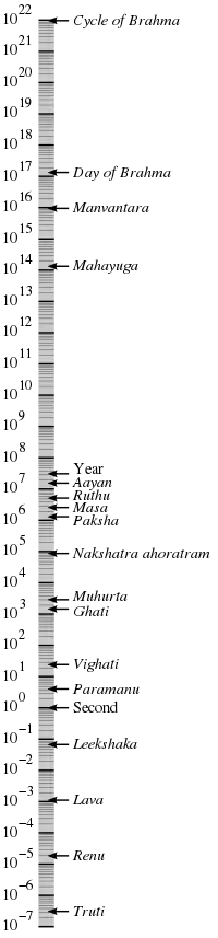 - 2 parardhas = 100 років Брахми = 1 пункт = 1 Маха- Кальпа (тривалість життя Брахми) (311040000000000 людських років)