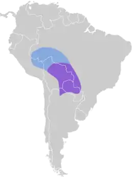 Сіроголові інезії мешкають в Перу (регіон Мадре-де-Дьйос), на півночі і сході Болівії, на південному заході Бразилії, на півночі Парагваю і на північному заході Аргентини. Гніздиться на південь від болівійського департаменту Бені, в Перу і північній Болівії трапляється в негніздовий період.