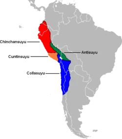 Імперія інків (кеч. Tawantin Suyu Тавантінсу́ю — «Четвірка земель») простягалась довгою смугою у Південній Америці з півночі на південь і включала частини територій сучасних Колумбії, Чилі, Перу, Болівії, Еквадору, Аргентини, а з Куско у чотири сторони виходили чотири дороги і кожну з них іменували згідно з назвою тієї частини імперії, до якої вона вела.