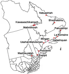 Населяють південну і східну частини півострова Лабрадор в канадських провінціях Ньюфаундленд і Квебек. 14 резервацій (11 в Квебеку, 3 — Лабрадорі) даного народу займають територію площею 38 га.