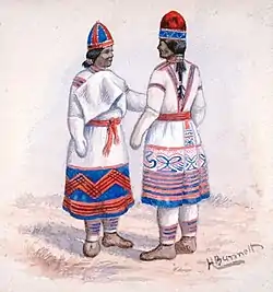 Це все робили чоловіки. Жінки відповідали за зберігання здобичі, приготування їжі, виробляли одяг, обробляли хутро. Серед традицій тривалий час зберігався звичай робити дитячі ляльки, які зберігалися у дівчат до шлюбу. Чоловіки носять довге волосся, що спадає униз. Жінки традиційно також мають довге волосся або у вигляді двох котушок.