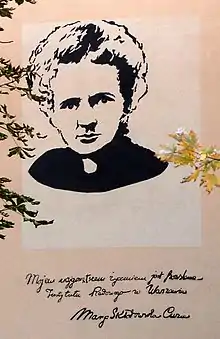 На одній зі стін інституту є напис пол. «Marii Skłodowskiej Curie, w hołdzie» («На честь Марії-Склодовської Кюрі»).