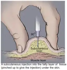 Ін'є́кція (лат. injicere — «впорскування») — спосіб введення в організм лікарських розчинів. Найчастіше впорскування виконують за допомогою порожнистої голки і шприца (з порушенням цілості шкірних і слизових покривів)[1]. Існує також безголкова ін'єкція — введення лікарських розчинів під високим тиском (швидкість струменя понад 150 м/с), але в Україні розповсюдження вона не отримала. В просторіччі часто замість слова ін'єкція вживають слово укол. Але укол — це один з етапів голкової ін'єкції — момент проникнення голки через шкіру чи слизову оболонку, що відчувається пацієнтом у вигляді неприємного подразнення.