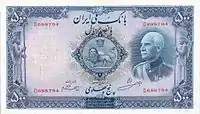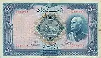 Реза Шах Пахлаві. 500 ріалів, 1938