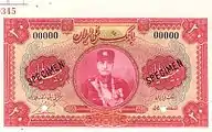 Реза Шах Пахлаві. 20 ріалів, 1932