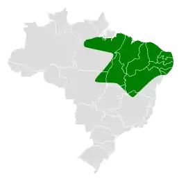 Східні іржавці поширені на сході Бразилії, на південь від Амазонки, від нижньої течії Тапажоса на схід до міста Белен в штаті Пара і далі до Параїби і Пернамбуку, а також на південь до верхів'їв річки Шінгу на північному сході Мату-Гросу, до північного Гоясу та до північно-західного Мінас-Жерайсу. Вони живуть в саванах каатанга та в сухих чагарникових заростях. Зустрічаються на висоті до 500 м над рівнем моря.