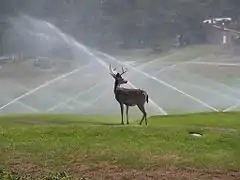 - дощування — розбризкуванням води із спеціально прокладених труб;
