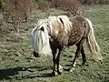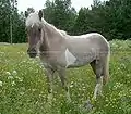 - Освітлене частково чи повністю захисне волосся - від темних (чорних, коричневих, сіро-коричневих) коренів до освітлених кінців (брудно-жовтих, жовтих, молочно-білих, білих), що нагадує колір карамельок, ірисок, інших цукерок, і зазвичай світлі вії, особливо у лошат.