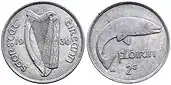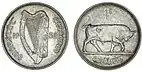 Перші монети вийшли у 1928 році, вони були викарбувані на Королівському монетному дворі в Лондоні. У 1938 році, після прийняття Конституції Ірландії, на аверсі монет відбулася зміна: вони отримали ірландську назву держави, «Éire», а також був вдосконалений дизайн арфи, який став більш зносостійким. Закон щодо Центрального банку від 1942 року (розділ 58), дав дозвіл на виготовлення монет з мідно-нікелевого сплаву, замість чистого нікелю. Також, згідно закону, затвердження на той час нової назви держави — «Ірландська Республіка», не вимагало внеску відповідних змін на монетах, випущених після 1948 року. Наступний Закон щодо карбування монет 1950 року головним чином дав дозвіл замінити срібло в монетах відповідних номіналів на інший метал. Останнім законодавчим актом для монет десятикратної системи — стала поправка 1966 року до Закону щодо карбування монет, яка дозволила випустити в обіг десятишилінгову монету. Десять шилінгів були єдиною циркулюючою ірландською монетою новітнього часу, на якій була відсутня арфа, вона мала написи на гурті та містила портрет політичної особистості — справжнього ірланцяна, Патріка Пірса, який був ірландським революціонером (написи на гурті вказували на Великоднє повстання 1916 року).