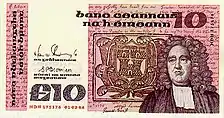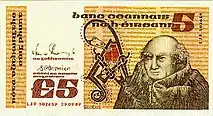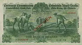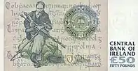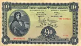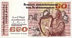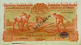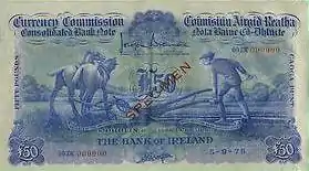 Ірландські банкноти випускалися від імені Валютної комісії або Центрального банку, які існували на момент друку, згідно постанови про випуск паперових грошей.