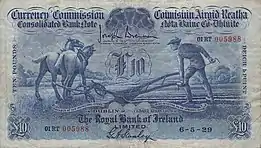 Серія банкнот «Орач», або так звані «Консолідовані банкноти», не вважалася законними платіжними засобами, а являла собою серію ірландських паперових грошей, еквівалентних векселям, які продовжували ходіння в деяких банках Великих Британії. Консолідовані банкноти випускалися тільки Валютної комісією Ірландії як міра перехідного платіжного засобу для восьми ірландських банків: Bank of Ireland, Hibernian Bank, Munster & Leinster Bank, National Bank, Northern Bank, Provincial Bank of Ireland, Royal Bank of Ireland і Ulster Bank. Ці банкноти були вперше випущені в період з 6 травня по 10 червня 1929 року, згідно угоди, за якою банки вилучають свої попередні банкноти і утримуються від випуску нових банкнот. Останні банкноти були надруковані у 1941 році, офіційно їх вилучили 31 грудня 1953 року.