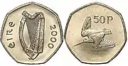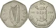 50 пенсів | Тисячоліття Дубліна | Герб Ірландії (арфа) |
