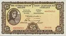 Коли набув чинності Закон щодо Центрального банку від 1942 року, у 1943 році до банкнот були внесені додаткові зміни. Валютна комісія була замінена Центральним банком Ірландії («Central Bank of Ireland»/«Banc Ceannais na hÉireann»), а підпис голови був замінений підписом губернатора («Governor/An Ghobharnóir»).