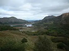 Центр Ірландії — низовина, близько 60-120 м над рівнем моря, невисокі гори, в основному біля берегів, деякі мають піки більш 1 тис. м; найвища гора Каррантухіл — 1038 м у графстві Керрі. Усе західне узбережжя складається із заток та естуаріїв. Береги Ірландії (особливо на півночі, півдні і заході) скелясті, сильно розчленовані затоками, найбільші з яких — Голуей, Шанон, Дінгл і Донегол на заході, Лох-фойл на півночі. Поблизу берегів Ірландії — безліч скелястих островів.