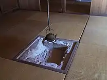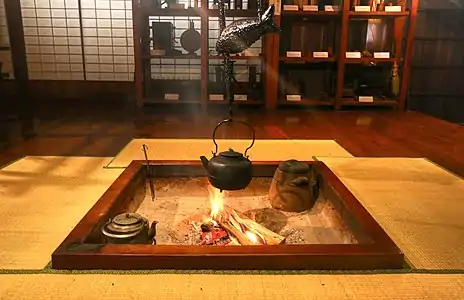 Ірорі (囲炉裏,居炉裏) — традиційне японське приопущене вогнище. Застосовується для опалення будинку та для приготування їжі. Це, по суті, квадратна, викладена кам’яною ямою підлога, над якою встановлений гачок, джизаікаґі (自在鉤), що як правило, складається із залізного стержня в бамбуковій трубці. Він використовується для підняття або опускання підвішеної каструлі або чайника за допомогою прикріпленого важеля, який часто декоративно оформлений у формі риби[1].