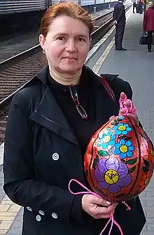 Антоніна Ісак-Дурда з власноруч виготовленою писанкою