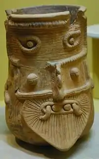 Водночас є свідчення керамічних виробів, не пов'язаних з посудом. Так, в районі пагорба 59 на площі, була знайдена глиняна фігурка жінки, на якій немає слідів одягу, проте присутні вушні вставки і елементи зачіски на кшталт головного убору з рибою. Посеред живота у неї розташована великий пупковий отвір, куди, куди повинна була вставлятися пуповина при проведенні ритуальних дій. Руками вона мовби тримає цю вставляється пуповину.