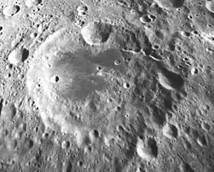 Найближчими сусідами кратера є кратер Деннінг на заході; кратер Марконі на півночі-північному заході; кратер Бейєрінк на північному сході; кратер Граве на сході; кратер Косберг на південному сході; кратер Андронов на півдні-південному заході; кратер Леві-Чивіта на південному заході; і кратер Пірке на заході-південному заході[2]. Селенографічні координати центру кратера 17.57° пд. ш. 147.49° сх. д., діаметр 94,1 км[3], глибина 2,8 км.