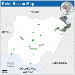 7 березня 2015, керманич Боко Харам Абубакар Шекау склав присягу ІДІЛ через звукове повідомлення, відіслане через Твіттер.[63][64] У публікаціях IДІЛ від кінця березня 2015 року Боко Харам згадується як Wilayat Gharb Afriqiya (Західно-Африканський вілаят).