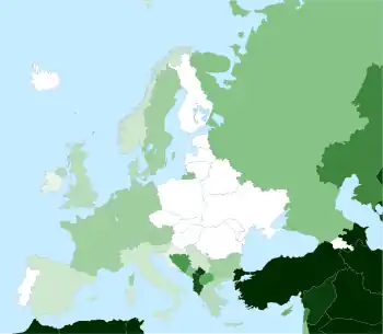 Серед нинішніх мусульманських держав Європи є Албанія, Боснія і Герцеговина, Республіка Косово.