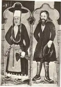 ![]() Ісландський традиційний костюм. Фраґмент розпису початок XVIII століття | |
