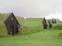 Ісландці заселяють острів нерівномірно. Переважна більшість ісландців живе у рибальських поселеннях на узбережжі. Поселення на острові хутірського типу. Такий хутір являє собою вервечку заглиблених у землю будиночків з торф'яних і дернових блоків з двосхилими дахами, що бічними стінами щільно прилягають один до одного (для збереження тепла). Жилими є приміщення посередині, а крайні — комори і хліви. У XIX столітті ісландці споруджували житлові будинки на 2—3 поверхи з дерева, туфу, базальту, обшиті гофрованим залізом і з черепичними дахами.