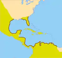 Іспанське узбережжя коричневим. Іспанські володіння зеленим.
