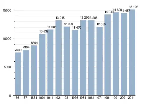 Станом на 31 грудня 2014 року в муніципалітеті офіційно проживало 1489 іноземців з 39 країн, серед них 478 громадян країн Євросоюзу та 9 громадян України.[4]