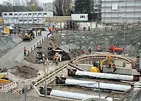У 2006 році в Кельні почалося будівництво нової підземної траси трамваю «Північ-Південь». Тунель мав пройти попід вулицею Святого Северина. Уже в 2007—2008 році на цій ділянці були інциденти, пов'язані з проривом труб водогону. У лютому 2009 року було зареєстроване опускання будівлі архіву за одну добу на 7 мм[3].