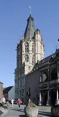 Архівні документи почали збирати в Кельні ще за часів Середньовіччя, так ще 1406 року міська рада прийняла рішення «Concordatum anno 1406 quo supra feria quinta post assumptionis beate Marie» про будівництво вежі поряд з міською ратушею, в якій серед іншого мали зберігатися важливі документи: міські грамоти, привілеї, векселі. Вежу було споруджено в 1407—1414 роках. Пізньоготична ратушна вежа в нідерландському стилі заввишки 61 м збереглася й до сьогодні.