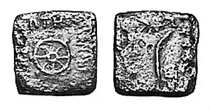 Монета царя Менандра I з колесом дхарми