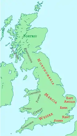У VII ст. серед усіх королівств найбільш домінуючими були Мерсія та Нортумбрія, особливо на півночі Англії. Останнє з королівств поширило свою владу на територію Шотландії та Уельсу. На деякий час Нортумбрія навіть підкорила Мерсію, коли у 655 році король Освіу вбив короля Мерсії Пенду. Але вже у 679 році нортумбрійці зазнали поразки від Мерсії у Битві при Тренті, та у 685 році — від піктів, і з того часу почався занепад цієї держави. У 664 році Британськими островами прокотилася епідемія, ймовірно чуми, яка була першою епідемією в Англії, відзначеною в англійській історії. Епідемія завдала великих людських та економічних збитків королівствам того часу.