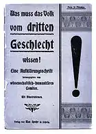 У 1919 році Магнусом Хіршфельдом у Берлінському районі Тіргартен був заснований Інститут сексуальних наук, що тісно співпрацював з Науково-гуманітарним комітетом, який перемістився до Інституту і створив у нім «Відділ сексуальних реформ».[31][32] Інститут активно контактував у своїх дослідженнях з гомосексуалами і трансгендерами. У дослідженнях Інституту гомосексуали розглядалися як представники третьої статі разом з чоловіками і жінками, тому вони не мають бути переслідувані через наявність у них певної природженої якості.[33]