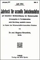 У 1914 році Хіршфельд видає монографію «Гомосексуальність чоловіка і жінки»(нім. "Die Homosexualität des Mannes und des Weibes"), в якій уперше в історії пропонує концепцію терапії гомосексуалів з метою примирення їх зі своєю сексуальністю, а не з метою перетворення їх на гетеросексуалів.[21]