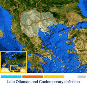 На початку XIX століття християнське населення Македонії частково входило до Румелії — так називали візантійські землі, захоплені Османською імперією. Приблизно третину населення становили мусульмани, в основному османського походження, у містах мусульмани-слов'яни і албанці становили меншину, в сільських районах мусульмани-албанці і мусульмани-слов'яни розселилися у верхів'ях річки Места. У містах переважали османи, греки, євреї, вірмени і влахи. Євреї іммігрували у другій половині XV століття і впродовж всього XVI столітті з Угорського королівства, Іспанської імперії й Італії. Слов'янський елемент набув деякого значення в містах тільки після 1860 року.