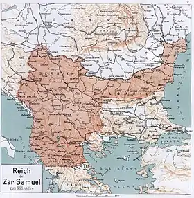 Самостійність зберегли лише області на захід від річки Іскир, де правили Комітопули Давид, Мойсей, Аарон та Самуїл. Останньому незабаром вдалося об'єднати під своєю владою всю територію від Дунаю до Фессалії. Ядром держави Самуїла, яка отримала у істориків назву Західно-Болгарське царство, була Македонія, а столицею був Охрид. В 997 році у Самуїл прийняв титул царя. Протягом усього свого правління він вів війну з Візантією, яка практично не припинялася. Йому вдалося приєднати Епір, сучасні Албанію і північно-східну Болгарію, а також значну частину Сербії, проте в 1014 році війська Самуїла були вщент розбиті у битві при Клейдіоні. 15 000 полонених болгар були засліплені за наказом візантійського імператора Василя II. Серце Самуїла не витримало, і він помер. Його наступники не змогли організувати опору: в 1018 році Болгарське царство впало, а його територія повернулася до складу Візантії.[11]