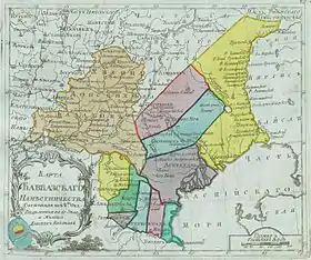 ![]() Росія 1734 року Перша генеральна карта Російської імперії, 1734 рік |