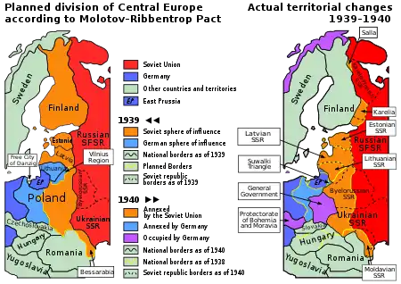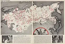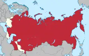 Більшовики на чолі з Володимиром Леніним взяли курс на розбудову соціалістичної держави. Використовуючи оманливі популістські гасла вкупі з неприкритим масованим «червоним терором» проти власного народу, їм вдалося досягти перемоги в громадянській війні і встановити радянську владу на більшій частині території колишньої Російської імперії[lower-alpha 1] 1922 року радянськими урядами Росії, України, Білорусі та Закавказької Федерації був утворений Радянський Союз[⇨]. З приходом до влади Йосипа Сталіна наприкінці 1920-х років розпочинається тоталітарна епоха під час якої в країні відбувається індустріалізація, колективізації і масові репресії. У вересні 1939 року СРСР на пару з націонал-соціалістичним урядом Третього рейху розпочав Другу світову війну з поділу Польщі. Розпочата Адольфом Гітлером німецько-радянська війна 1941 року дозволила перейти радянському уряду з табору «світових ізгоїв» до союзників по Антигітлерівській коаліції та взяти участь у повоєнному переоблаштуванні світового порядку[⇨]. СРСР зміг створити потужний блок соціалістичних держав на теренах Євразії від Берліну до Ханою. Перебуваючи в стані глобального протистояння (Холодної війни) із Західним світом, СРСР активно нарощував економічну, військову та наукову міць. Використовуючи накопичений потенціал і ентузіазм молодого покоління під час хрущовської «Відлиги», спромігшись першим відправити людину до космосу[⇨]. Безперспективна політика командної економіки за відсутності гнучкості забюрократизованої однопартійної системи КПРС (партократія), волюнтаристська внутрішня і зовнішня політика призвели за декілька десятків років спочатку до брежневського «Застою»[⇨], подальших спроб реформування (горбачовська «Перебудова»), а потім і повного краху державного ладу після невдалої спроби заколоту 19-21 серпня 1991 року[⇨].