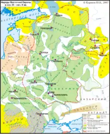 Етнографічна мапа Східноєвропейської рівнини, VIII-IX століття (англ.)