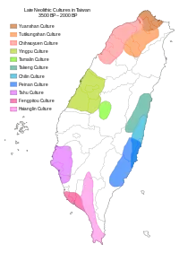 За даними археологів перші люди переселились з материка на Тайвань бл. 20-8 тис. років до н. е. В період пізнього палеоліту та мезоліту на сході о. Тайвань існувала археологічна культура Чанбінь. Люди цієї культури займались мисливством, збиральством та рибальством. У 5-3 тис. до н. е. на острові існувала археологічна культура Дапенкен періоду неоліту. Люди цієї культури, на думку вчених, були предками всіх народів, що зараз говорять на австронезійських мовах. Вони принесли з собою з материкового Китаю вміння виробляти кераміку та землеробство. Від цієї культури пішли і аборигени Тайваню.